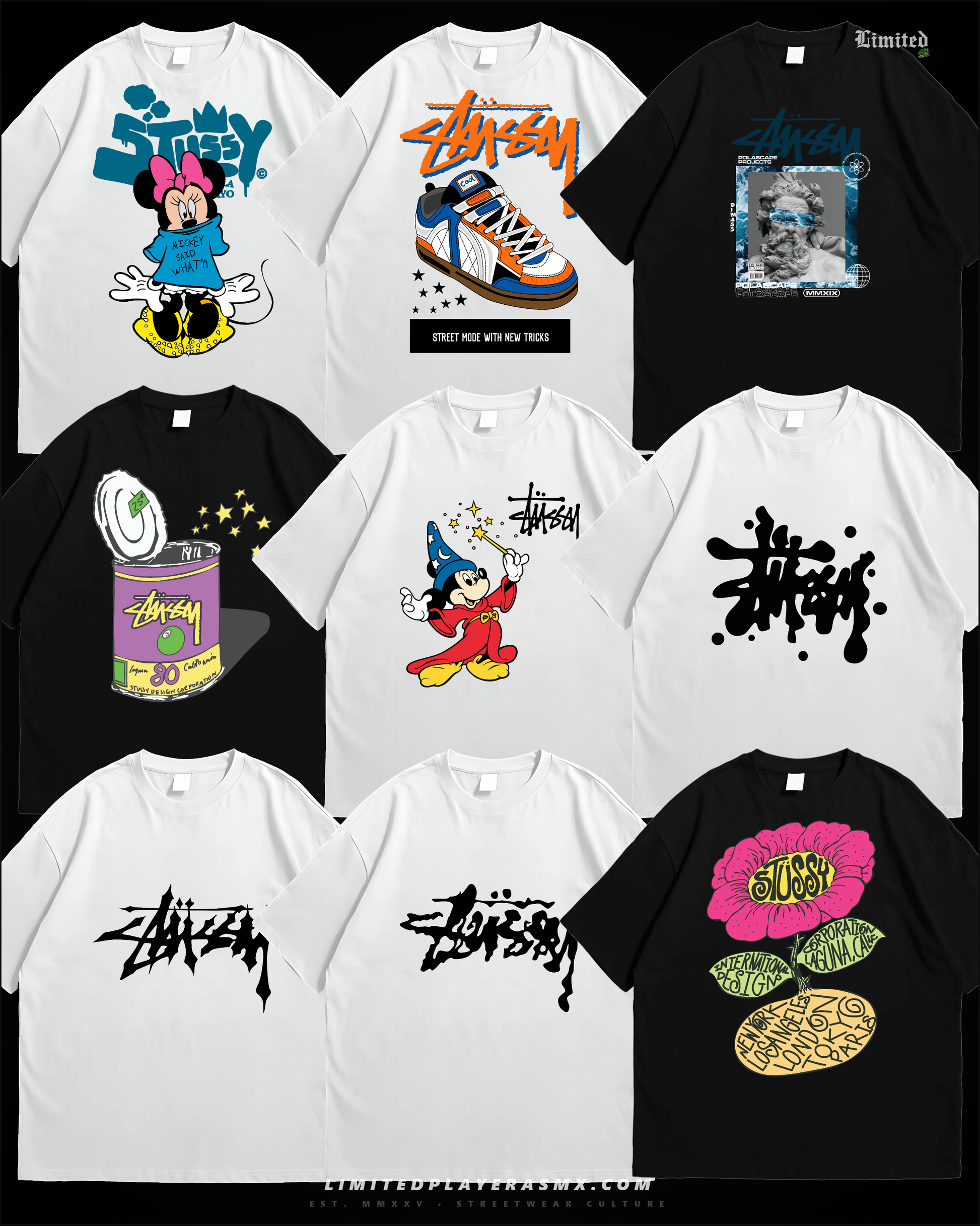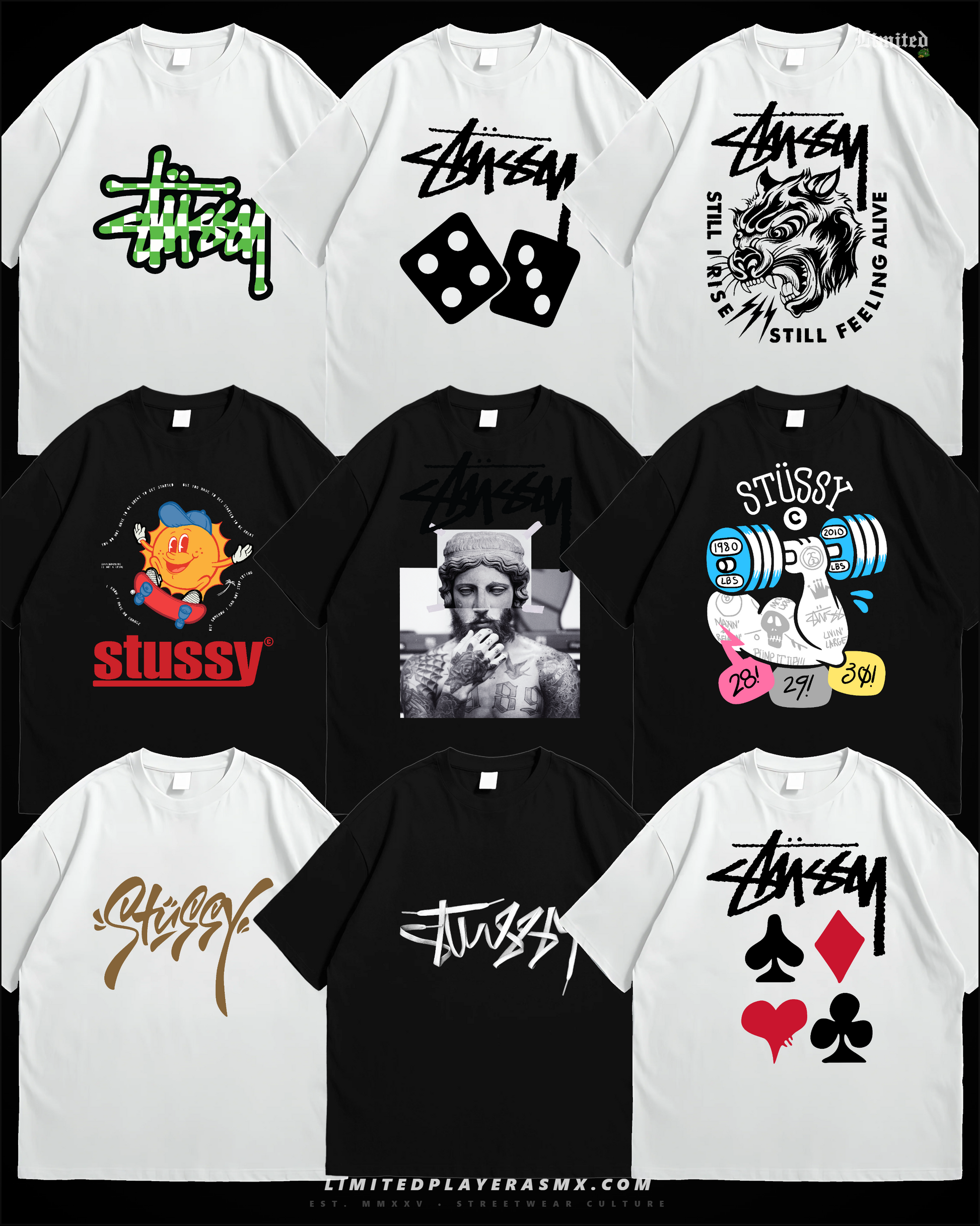 Descarga este exclusivo pack de más de 100 diseños STUSSY en formato PNG de alta calidad, ideales para impresión textil profesional en DTF, sublimación y DTG. Cada diseño cuenta con 300 DPI y fondo transparente, listo para imprimir sin ajustes.